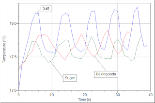 Now go back to the evaporative updraft force. At this point, we only know that cutting off evaporation shuts down the energy loop. We still do not know how what happens under the water line in the salt water cup. The following graph clearly shows that this effect exists in not only a salt solution, but also a baking soda solution and a sugar solution.