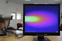 The first image in this post shows an IR image of a poster board heated by a hair dryer. The second image shows a demo of AR thermal imaging: When a hair dryer blows hot air to a liquid crystal display (LCD), the AR system reacts as if hot air could flow into the screen and leave a trace of heat on the screen, just like what we see in the IR image above. You may click the links below the images to watch the recorded videos.