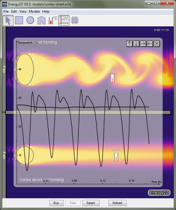 Now, with our online simulation program Energy2D you can create and investigate the Kármán vortex street in your browser without depending on Mother Nature to give you an opportunity window.