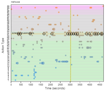 A scatter plot of action timeline. |