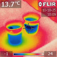 | Figure 2. An IR image take after four minutes showing the convection in the freshwater cup. |