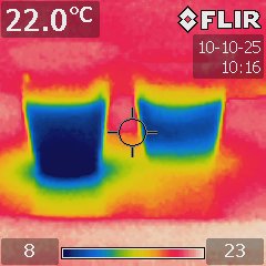 | Figure 2. An IR image take after four minutes showing the convection in the freshwater cup. |